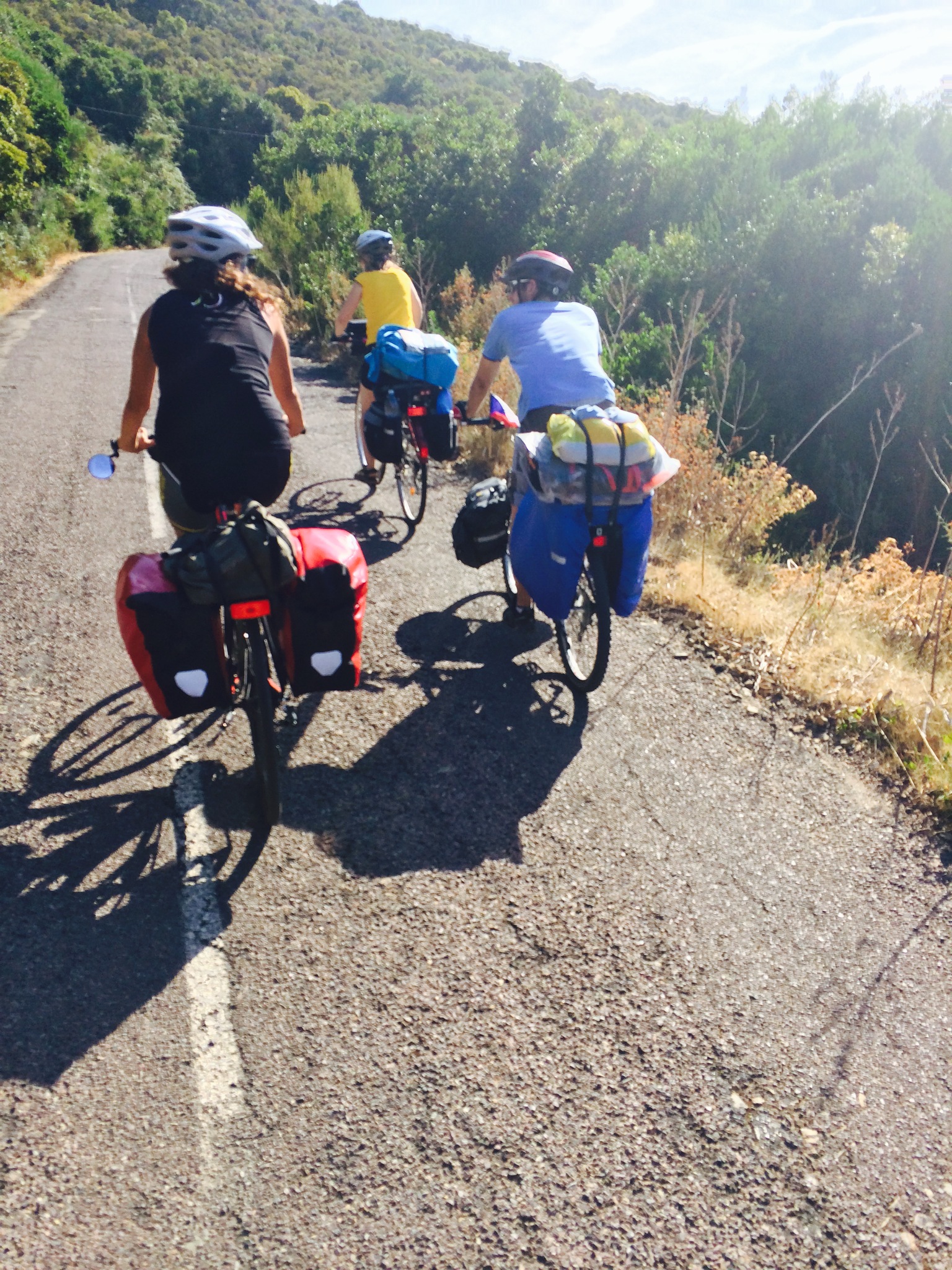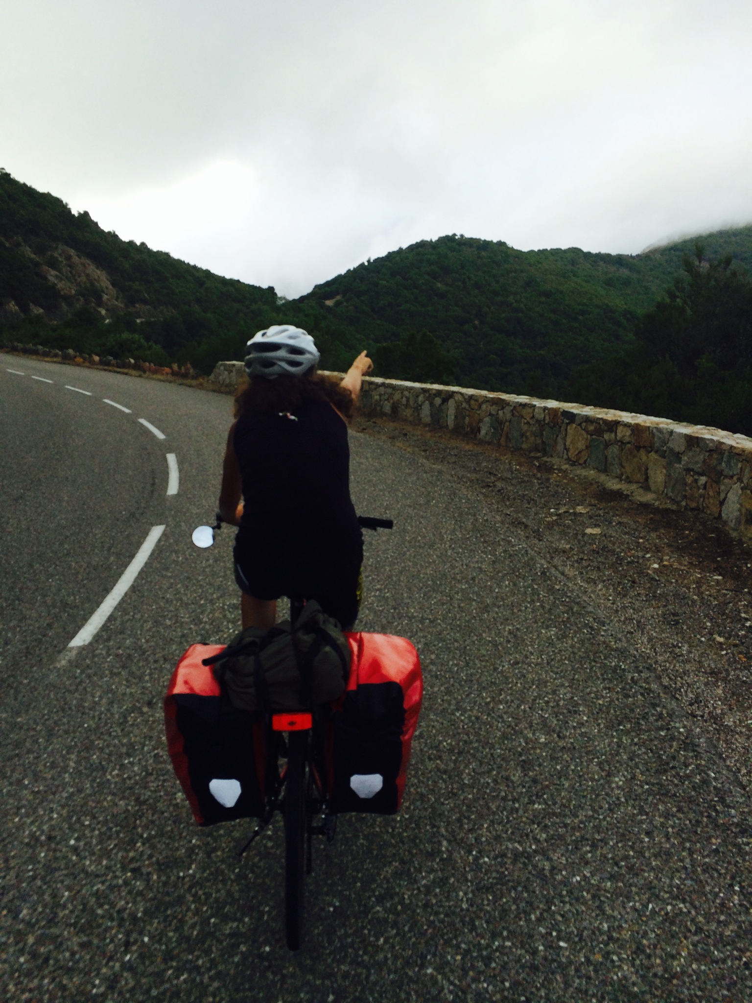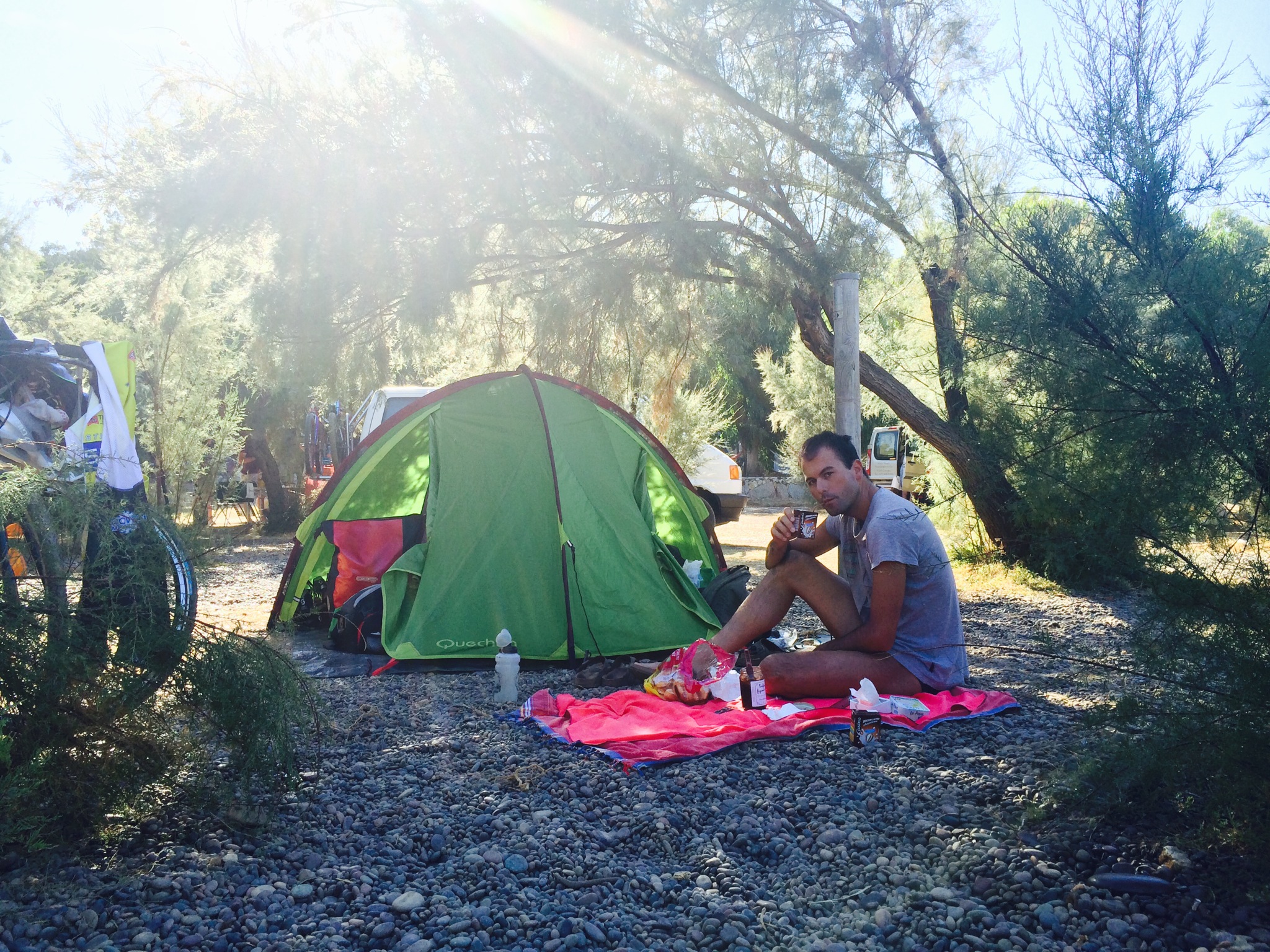 Il babbo di Filippo c’è stato 30 anni fa in bici(dice!) e quindi la cosa incuriosisce! Partiamo pensando che fosse tutta pianura e ci ritroviamo a fare una salita di 8 km , il col de serra! Vista mozzafiato e arrivo a porto con le rocce tinte di rosso dal sole al tramonto! Arrivo are 20,15, montaggio tenda lampo, doccia e tre pizze corse, disgustose ma per i nostri stomaci eccellenti! ☺️