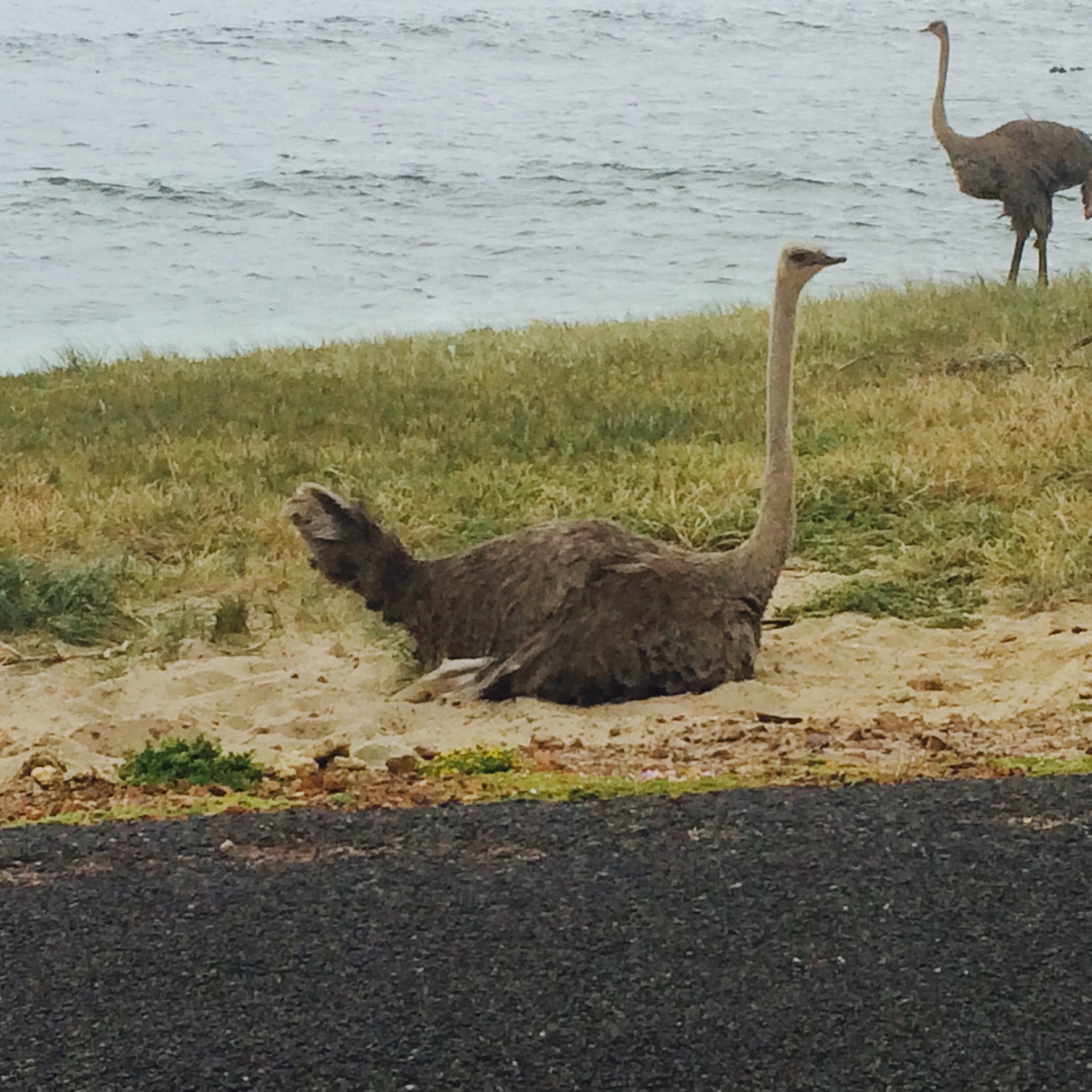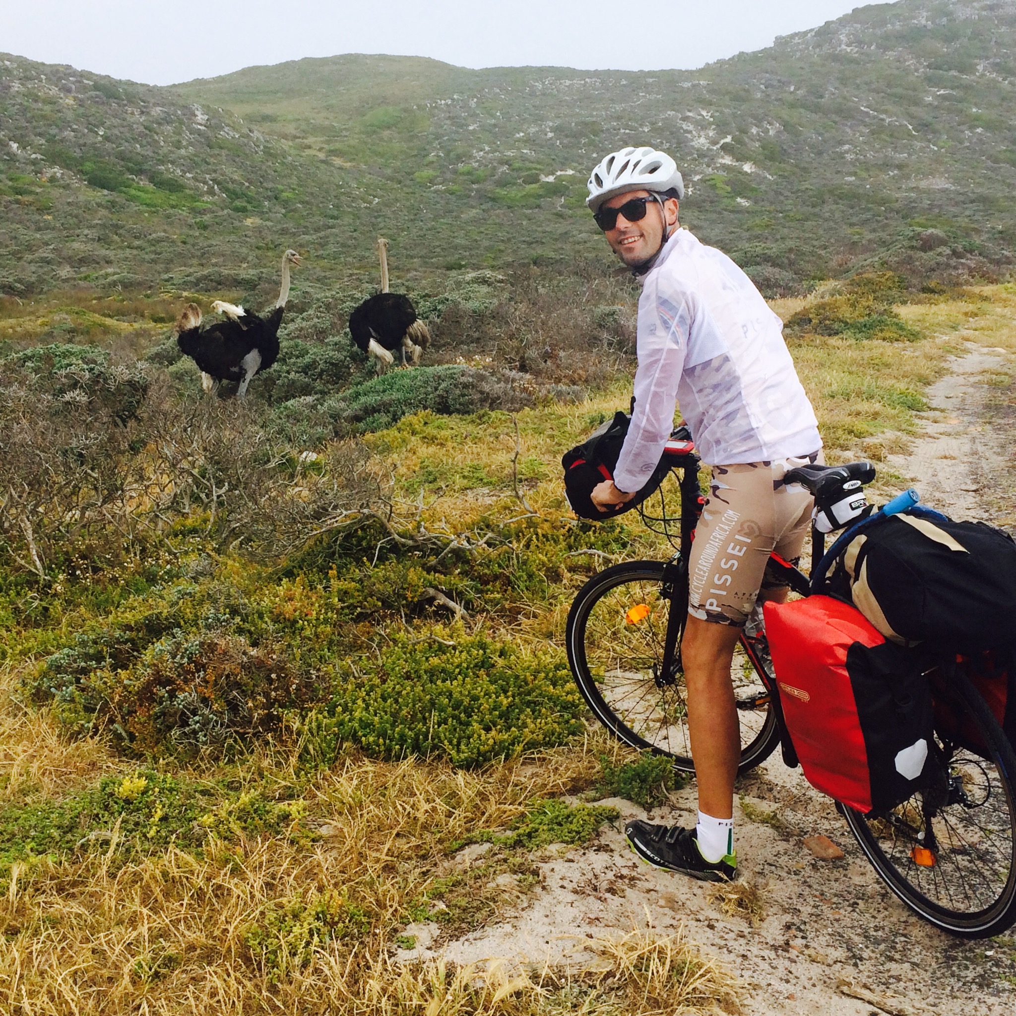 Pedalando nel niente con l’Oceano Atlantico sulla destra e l’Oceano Indiano sulla sinistra ci siamo dimenticati la fatica sopratutto quando ci siamo trovati in mezzo agli struzzi, liberi nel parco.