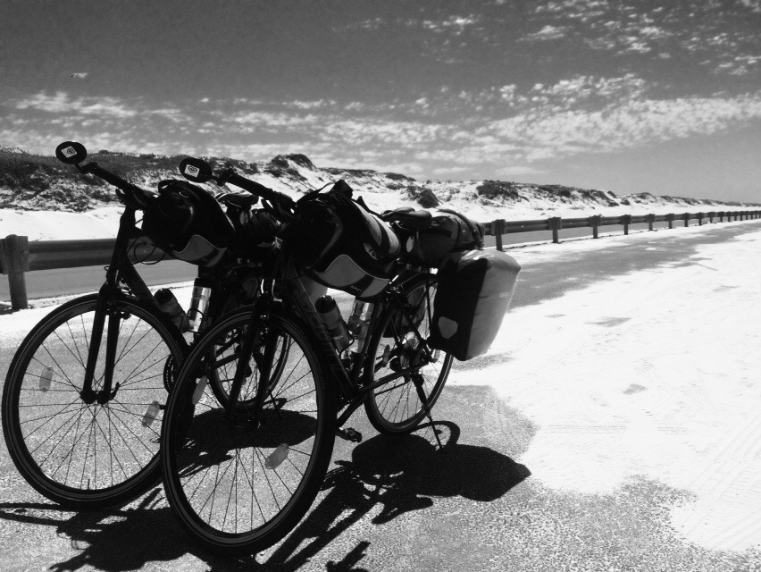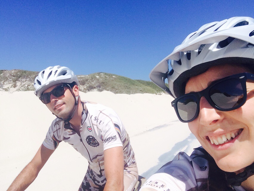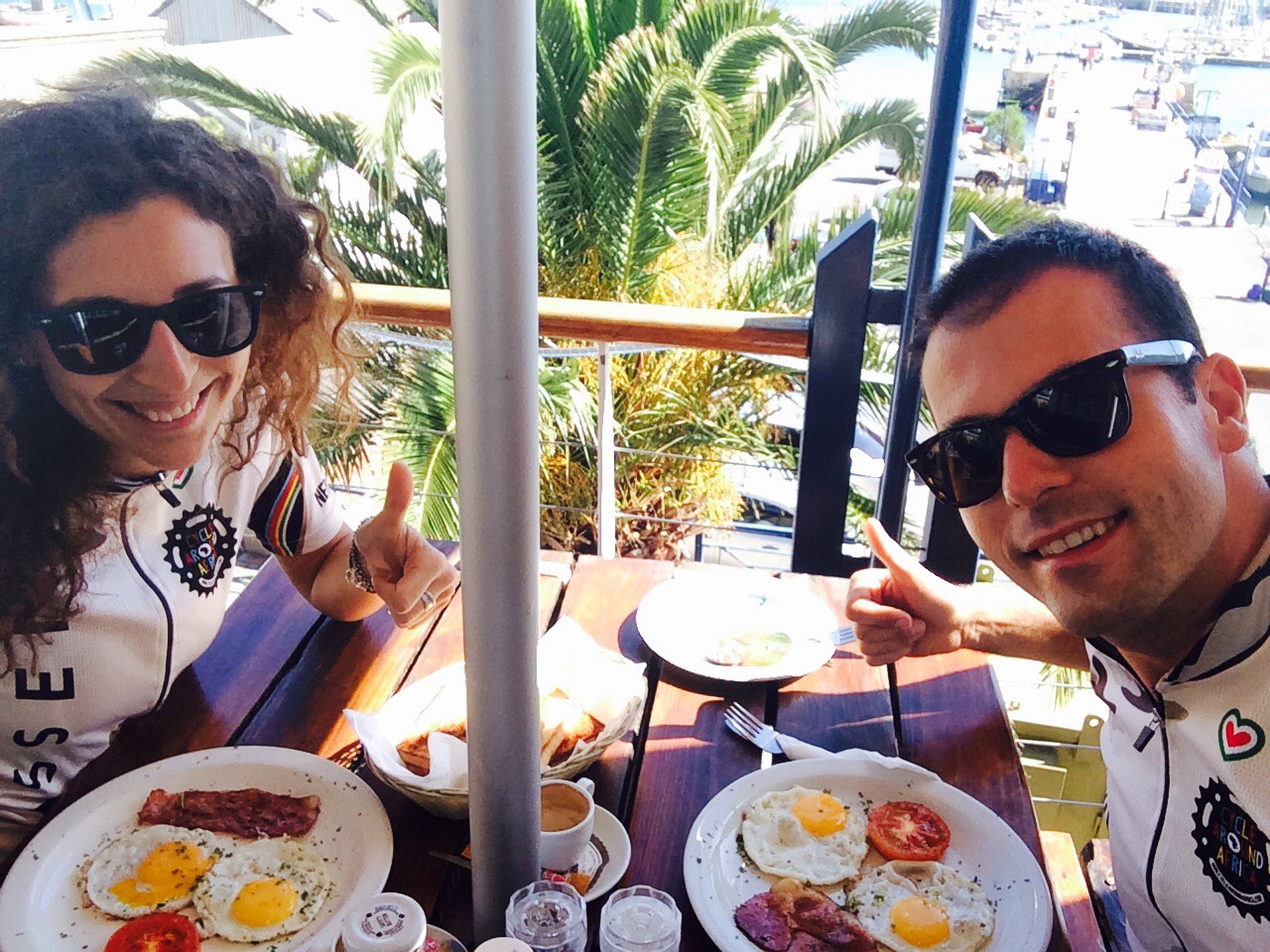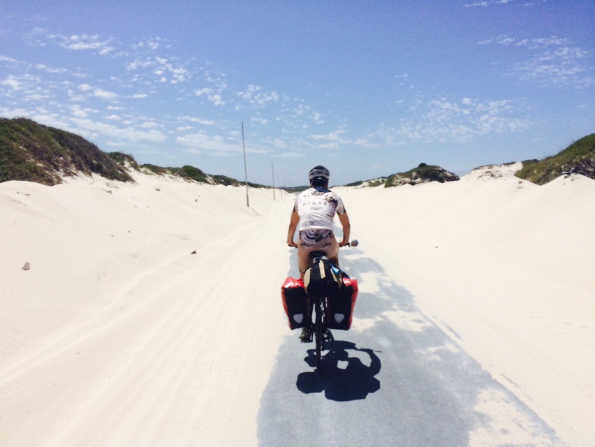 Dopo i primi 25 km fatti in un baleno a 27 di media entriamo in una piana lungomare infinita di sabbia bianca con un vento fortissimo