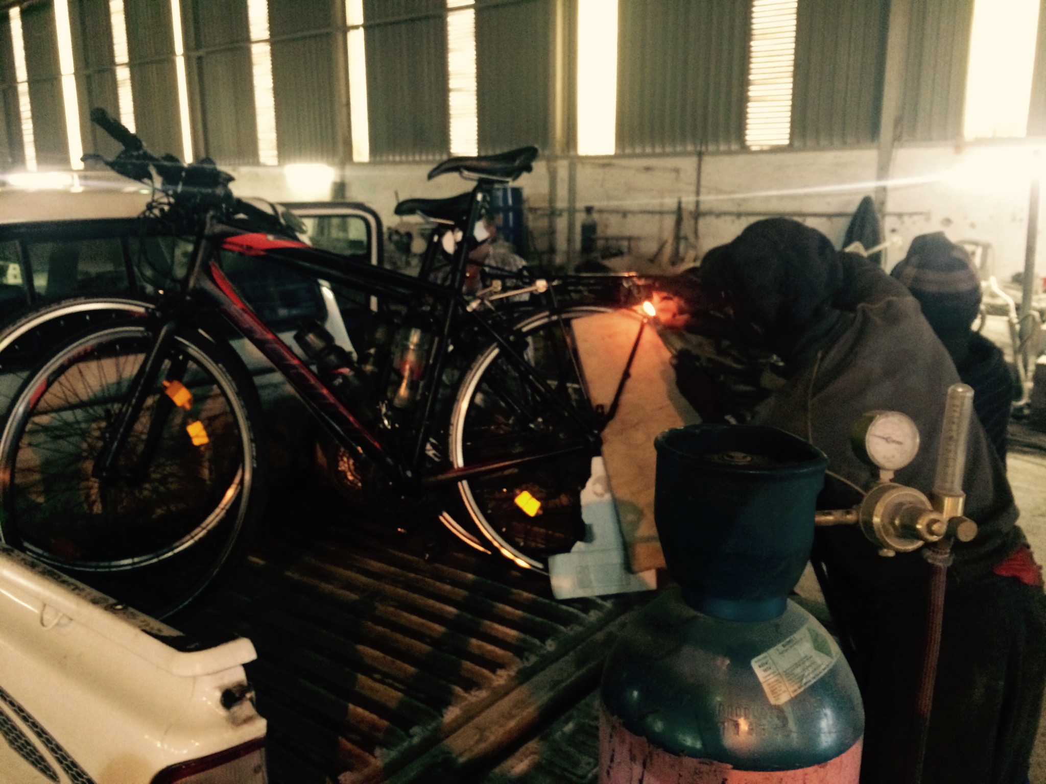 Noi come prima soluzione abbiamo pensato di noleggiare un auto e permettere al ciclista cronico Filippo di sgambettare senza borse scortato dall’auto, ma non ne abbiamo trovate disponibili.