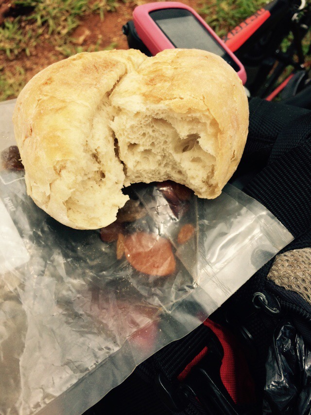 Filippo affronta le intemperie, caldo poi pioggia poi sole poi pioggia poi la fame poi la stanchezza e pedala a più non posso.