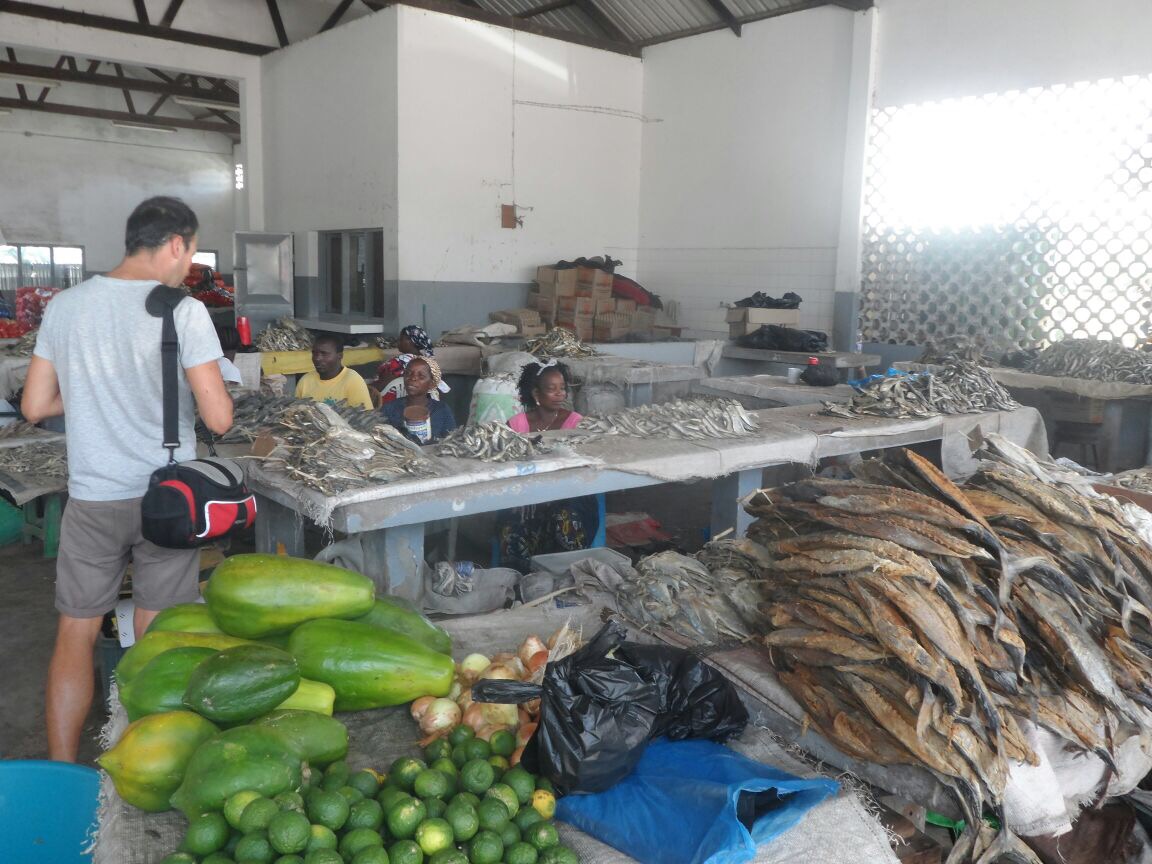 Una passeggiata in spiaggia ed un giro in citta, il centro é un posto caotico e vivo ma sopratutto offre un simpatico mercato centrale fitto di bancarelle, che in realta sono stuoie circondate da fili tirati ed intrecciati su cui si puo trovare di tutto.