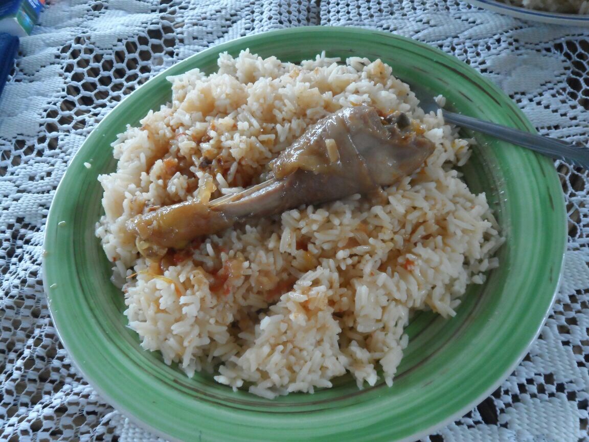 Apriamo il pentolone e capiamo che avremo del riso al pomodoro e gallina.