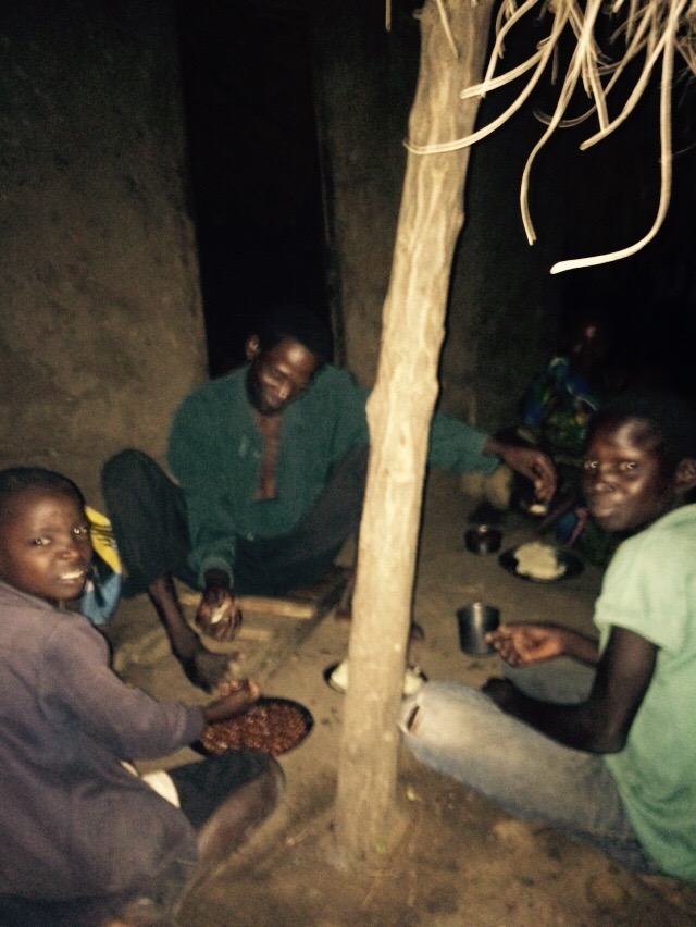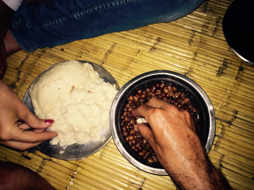 Ci guardiamo intorno e ci troviamo davanti ad un altro paesaggio magico, milioni di lucciole intorno a noi, l’odore del fuoco, i bisbiglii dei bambini (che noi non riusciamo a vedere) intorno a noi..la cena sulla stuoia fatta di xhima (si legge scima ed é la polenta) con fagioli e quella sensazione che ormai ci accompagna da mesi..un altro mondo!
