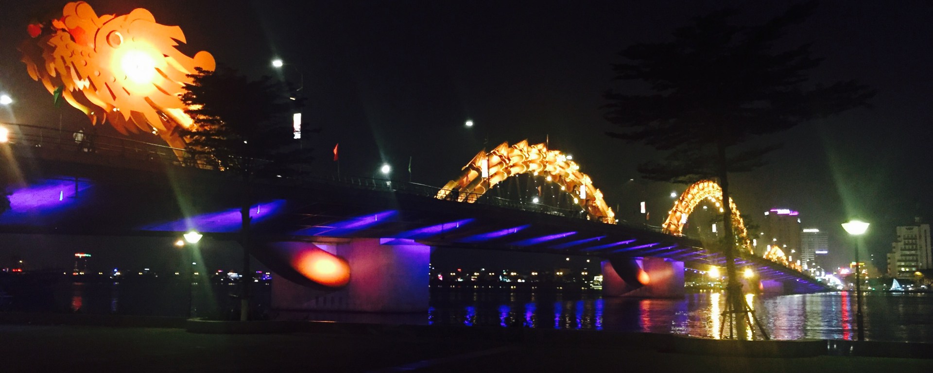 Il lungo fiume si è illuminato, così come tutta la cittá, le barche, i locali ed i ponti!! Ponti enormi, moderni e luccicanti. Il più impressionante è il dragone, un enorme, gigantesco drago che cambia colore. Non sembra di essere nello stesso paese.