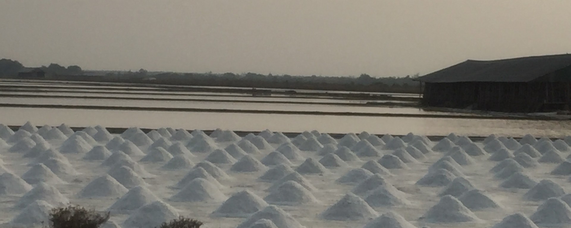 Fortunatamente gli ultimi 30 km sono stati su una parallela, piu vicino al mare, in mezzo a saline e mangrovieti. Lasciato il brutto ricordo degli 80 km brutti fuori da Bangkok, ci siamo risollevati lo spirito con un paesaggio totalmente diverso.