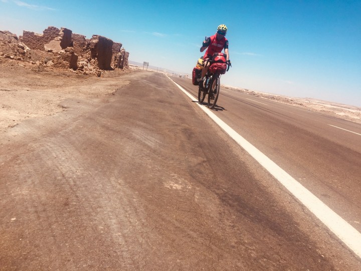 Non c’erano punti all’ombra, vento contrario ma, sopratutto, non c’erano punti di riferimento. Sembrava tutto immobile e quando da lontano abbiamo avvistato gli alberelli della unica cittadina presente prima di Calama, il nostro obiettivo, ho pensato: è fatta.