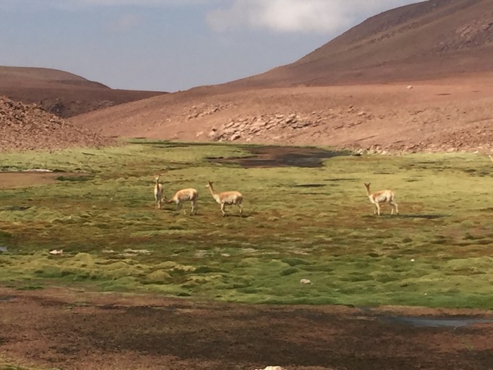 Abbiamo passato un Canyon, la strada saliva tra le sponde rocciose ed un piccolo rigagnolo d’acqua rendeva il fondo verde e rigoglioso. Abbiamo avvistato Vigogne che si abbeveravano e colonie di Viscacha che saltellavano impazziti al nostro passaggio arrampicandosi sulle rocce alla velocità della luce. Il Viscacha è un animale buffo, una via di mezzo tra una lepre, un ratto e un coniglietto soffice, con due orecchie corte e dritte che sembrano immobili durante i loro movimenti, sì lo definirei buffo. Una specie di cincillà delle Ande.