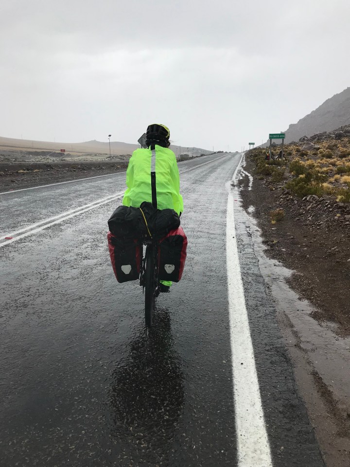Abbiamo spinto le nostre biciclette ancora per un’ora fino a quando ha smesso di piovere e ci siamo fermati per una barretta energetica.