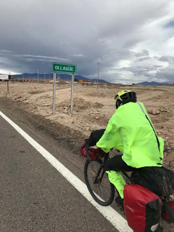 È stata dura. La strada ha iniziato a salire, come sempre, arrivati in cima il cielo all’improvviso nuvoloso ma con sprazzi azzurri. Scollinata l’ennesima vetta siamo scesi a piú non posso, Ollague si intravedeva infondo alla discesa e con grande innocenza abbiamo iniziato a fantasticare sul posticino in cui avremmo passato.