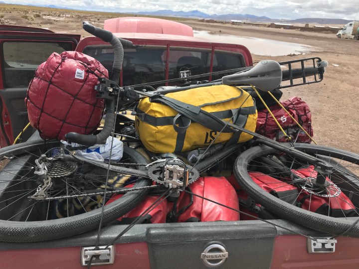 Con il consenso della dogana, e della polizia di entrata della Bolivia, abbiamo caricato le bici e siamo partiti con Fabio.