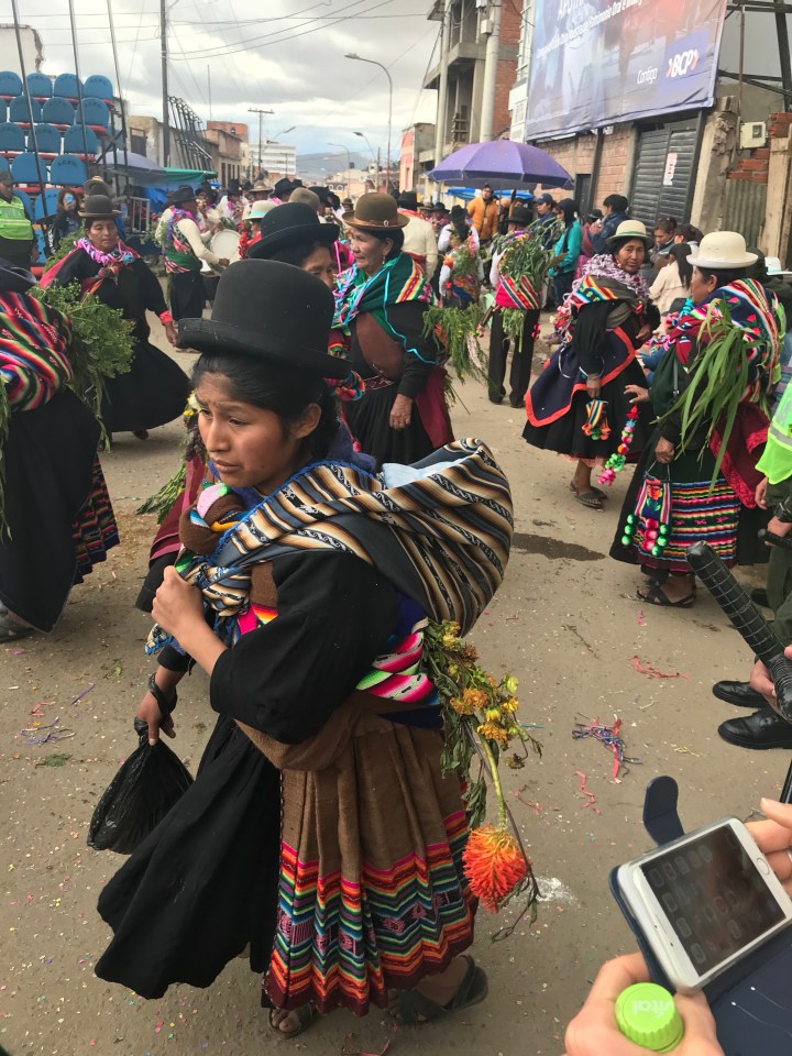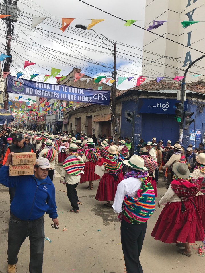 Praticamente 190 distretti della Bolivia si presentano in città vestiti a festa (ovvero con i loro vestiti usuali di tutti i giorni) per un totale di circa 20.000 figuranti ed armati di strumenti tipici come flauti e tamburelli danno vita ad un corteo infinito che dura dalle 8 di mattina alle 8 di sera.