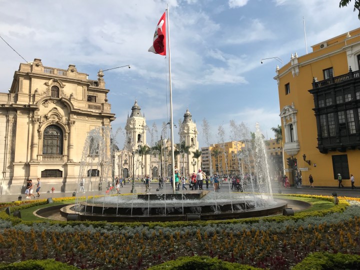 Vi sto scrivendo da un parco bellissimo, siamo a Lima. Il primo scalo prevede 9 ore di attesa perciò abbiamo approfittato e vedendo la città ci dispiace non avere più tempo. Siamo all’ombra di uno dei tanti alberi tropicali che permettono di frescheggiare, a Lima non piove mai, clima costante intorno ai 20 gradi,ventilato ma siamo pur sempre sull’equatore quindi quando camminiamo sotto il sole sembra di sentire i raggi sulla propria testa con una gran pesantezza.